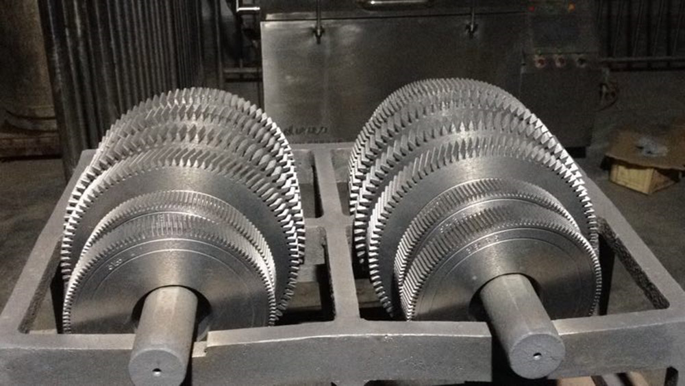 在爐體后部有高速葉輪風機、方形多級銅-銅換熱器(釬焊式)和風管導流裝置等組成。氣冷時,充入高純氮氣或高純氬氣,在高速葉輪風機的驅動下,氣體經過率的銅銅換熱器吸進葉輪,經過葉輪換向,通過風管導流裝置均勻的從噴嘴噴向工件,使工件均勻的強制冷卻。形成強制高流率循環,實現工件快速氣冷。
