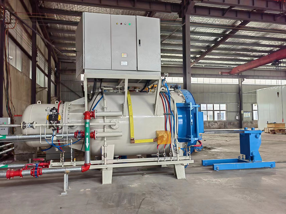 爐體和爐蓋為雙壁水冷結構,內壁、外壁采用8mm碳素鋼制造,爐門采用鉸鏈式側向旋開結構,后部為標準橢圓封頭焊接電機安裝法蘭,安裝內循環氣冷系統。